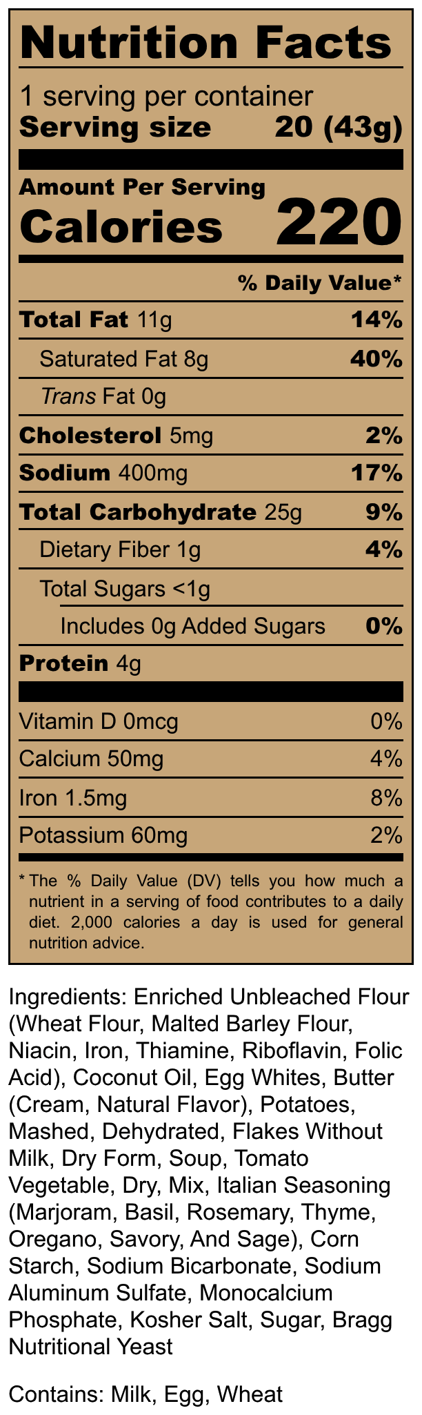 Our Tomato Soupables deliver the rich, tangy-sweet taste of classic tomato soup with every crispy bite. Like the perfect pairing to a grilled cheese on a rainy afternoon, this timeless favorite brings you the bright, sun-ripened flavor of vine-ripe tomatoes with just a hint of basil. One crunch and you'll be transported back to childhood, savoring all the comfort of a steaming bowl without ever needing a spoon.